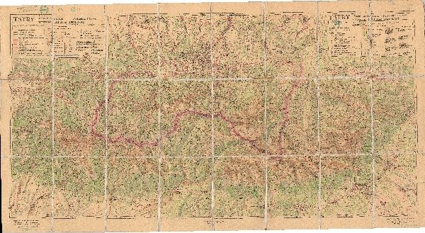 Mapa obejmująca całe Tatry. Rzeźba zaznaczona przy pomocy poziomic i cieniowania, punkty wysokościowe. Sieć hydrograficzna. Zaznaczono obszary zalesione i występowanie kosodrzewiny. Komunikacja - koleje, koleje linowe i drogi. Osadnictwo. Zaznaczono szlaki turystyczne, schroniska, obiekty turystyczne, obiekty użyteczności publicznej, 113. obiektów opisano liczbami, które wyjaśniono w legendzie. Odręcznie zaznaczona kolorem granica państwowa. Objaśnienia.