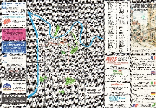 Plan Grenoble. Zaznaczone ulice i parki. Indeks ulic. Reklamy. Karta tytułowa.