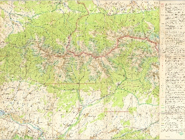 Mapa turystyczna obejmująca Tatry Zachodnie oraz część Tatr Wysokich. Rzeźba przedstawiona przy pomocy poziomic i cieniowania. W obszarze wysokogórskim rysunek skał. Zaznaczone obszary zalesione i piętro kosodrzewiny. Sieć hydrograficzna. Komunikacja - drogi i koleje. Osadnictwo. Koleje linowe i wyciągi narciarskie. Zaznaczone szlaki turystyczne, obiekty turystyczne i sportowe. Zaznaczone granice TPN i TANAP oraz pasma ochronnego. Obok mapy legenda.