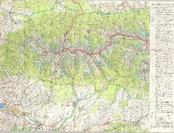 Mapa turystyczna obejmująca Tatry Zachodnie oraz część Tatr Wysokich. Rzeźba przedstawiona przy pomocy poziomic i cieniowania. W obszarze wysokogórskim rysunek skał. Zaznaczone obszary zalesione i piętro kosodrzewiny. Sieć hydrograficzna. Komunikacja - drogi i koleje. Osadnictwo. Koleje linowe i wyciągi narciarskie. Zaznaczone szlaki turystyczne, obiekty turystyczne i sportowe. Zaznaczone granice TPN i TANAP oraz pasma ochronnego. Obok mapy legenda.