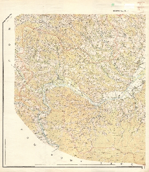 Mapa topograficzna powiatu Nowy Sącz obejmująca okolice Łącka. Rzeźba przedstawiona przy pomocy poziomic i punktów wysokości. Sieć hydrograficzna. Zaznaczono obszary zalesione. Komunikacja - drogi. Osadnictwo. Zaznaczono granice administracyjne.