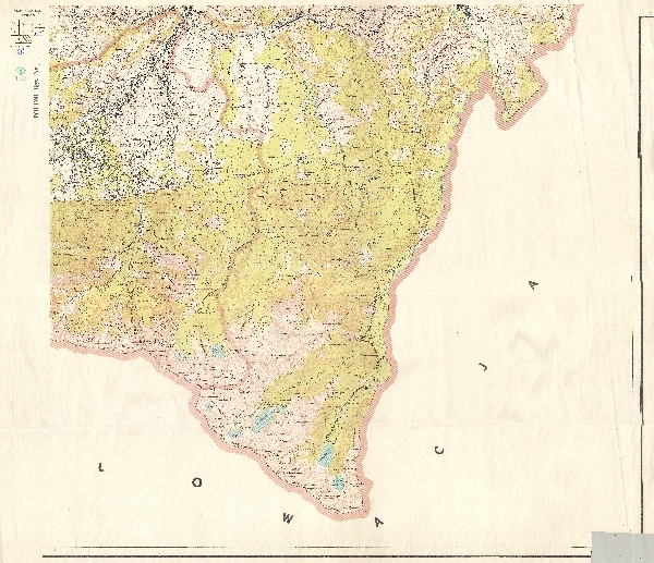Mapa topograficzna powiatu Nowy Targ obejmująca Tatry Wysokie i Zakopane. Rzeźba przedstawiona przy pomocy poziomic i punktów wysokościowych. Sieć hydrograficzna. Zaznaczono obszary zalesione. Komunikacja - drogi i koleje, kolej linowa. Osadnictwo. Zaznaczono granice administracyjne. Objaśnienia na arkuszu 4. Na mapie odręcznie zaznaczono granice gminy.