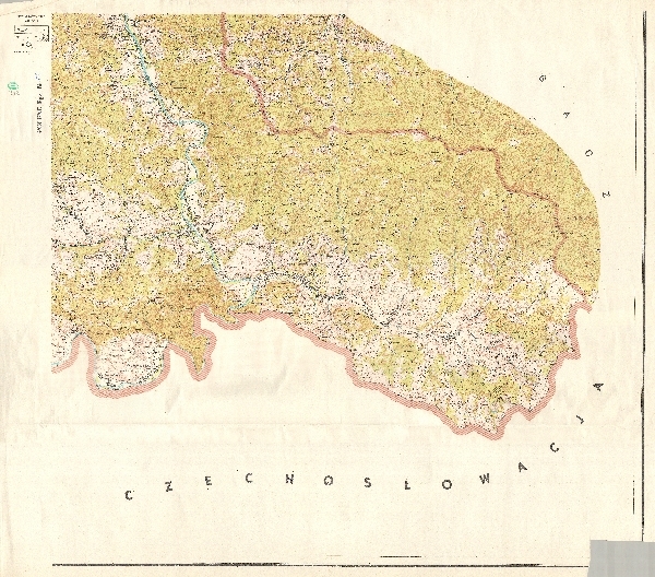 Mapa topograficzna powiatu Nowy Targ obejmująca Pieniny w rejonie Szczawnicy. Rzeźba przedstawiona przy pomocy poziomic i punktów wysokościowych. Sieć hydrograficzna. Zaznaczono obszary zalesione. Komunikacja - drogi. Osadnictwo. Zaznaczono granice administracyjne. Objaśnienia na arkuszu 4.