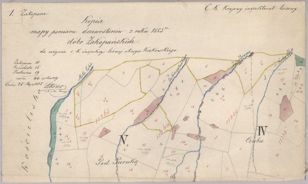 Kopia mapy pomiaru drzewostanów z roku 1883go dóbr Zakopańskich. 1. Wydział Zakopane