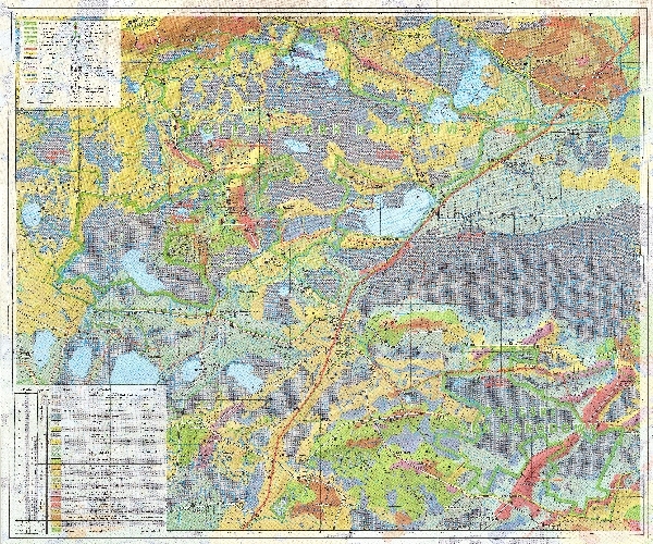 Szczegółowa mapa Poleskiego Parku Narodowego z naniesioną budową geologiczną podłoża. Rzeźba zaznaczona metodą cieniowania. Sieć hydrograficzna. Komunikacja - drogi. Zaznaczone miejscowości. Naniesiono granice parku narodowego, obszarów ochrony ścisłej i rezerwatów. Zaznaczono ścieżki edukacyjne, szlaki piesze, szlaki rowerowe i konne, obiekty turystyczne, użyteczności publicznej i historyczne. Zaznaczono punkty geologiczne. Objaśnienia.