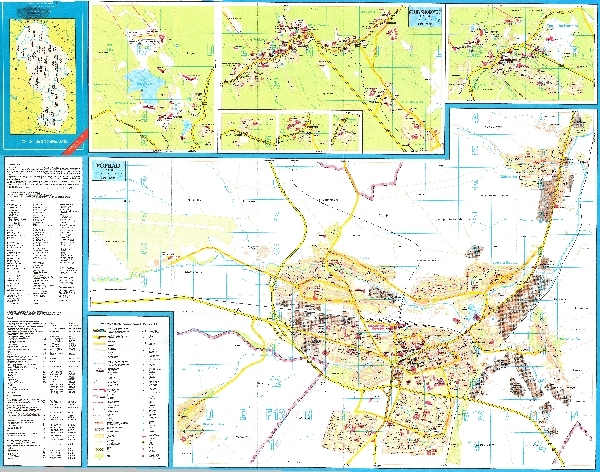 Plan miasta Poprad i Stary smokowiec. W podkładzie sieæ hydrograficzna. Zaznaczone obszary le¶ne, sieæ komunikacyjna - drogi, koleje,. Zabudowa. Opisane ważniejsze obiekty. Dodatkowo plan Szczyrbskiego Jeziora i otoczenia (19x22 cm), Stary Smokowiec (35x23 cm), Tatrzańska Łomnica (23x15 cm) oraz Nowa Polanka, Tatrzańska Polanka i Tatrzańskie Zrêby.