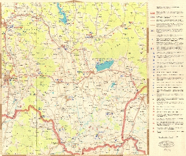 Mapa samochodowa obejmująca obszar na wschód od Koszyc. W podkładzie sieć rzeczna i obszary zalesione. Zaznaczone ważniejsze drogi i miejscowości oraz obiekty turystyczne.