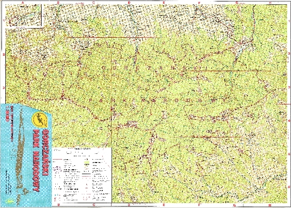 Gorczański Park Narodowy mapa turystyczno-nazewnicza