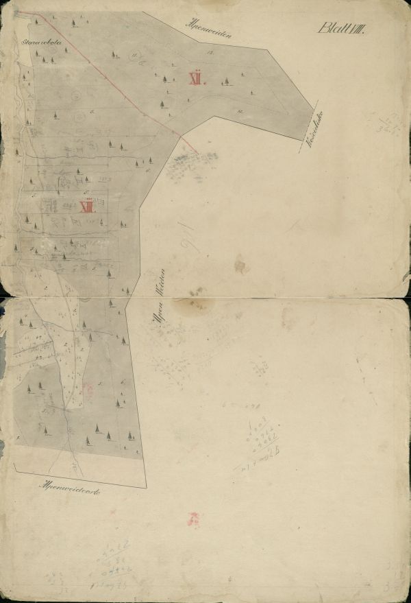 Wirtschafts: und Flächen: Karte der zur Herrschaft "Czarny Dunajec" gehörigen Waldungen. Blatt VIII.