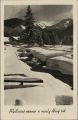 Indeks tematyczny: życzenia świąteczne i noworoczne ; karta okolicznościowa ; pejzaż ; polana ; potok ; szałas ; zima