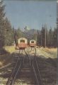 Indeks geograficzny: Wagony kolei linowo terenowej ze Starego Smokowca na Siodełko w czasie mijania się. W tle szczyt Łomnicy.