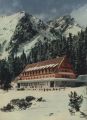 Indeks tematyczny: zima ; architektura ; narciarz ; pejzaż ; schronisko ; schronisko nad Popradzkim Stawem ; szczyt ; turysta ; turystyka