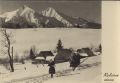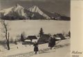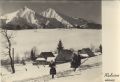Indeks geograficzny: życzenia świąteczne ; drzewo ; etnografia ; góralka ; pejzaż ; szczyt ; wieś ; zabudowa ; zima