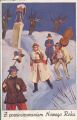 Indeks tematyczny: zima ; karta okolicznościowa ; Nowy Rok ; osada ; pejzaż ; zabudowa