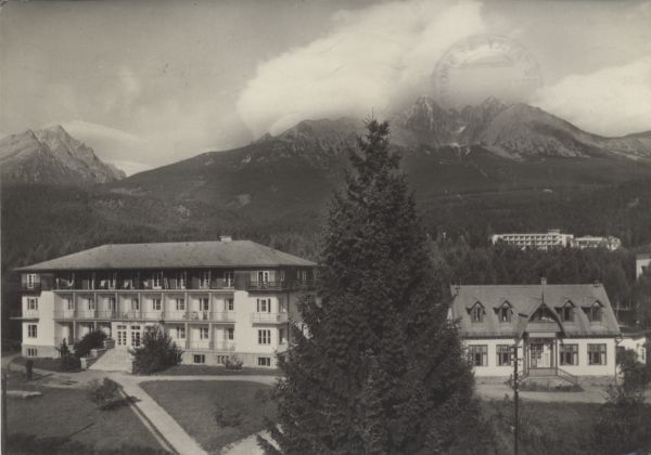Tatry Wysokie - Tatrzańska Łomnica. Dom wypoczynkowy RZZ Wołga. W tle Sławkowski Szczyt, Łomnica i Kieżmarski Szczyt.