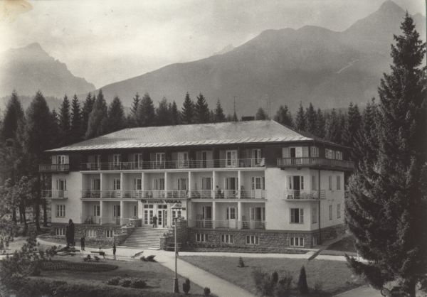 Dom wypoczynkowy RZZ Wołga. Tatrzańska Łomnica. W tle Sławkowski Szczyt i Łomnica.