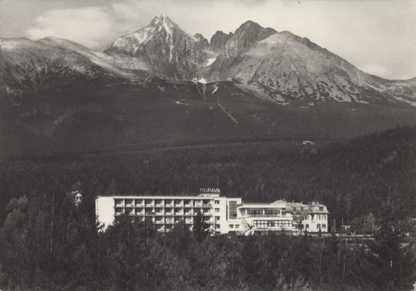 VYSOKÉ TATRY - Tatranská Lomnica Zotavovòa ROH Morava. V pozadi Lomnickę (2634 m), Vidly (2517 m) a KeŸmarskę ©tit (2556 m)