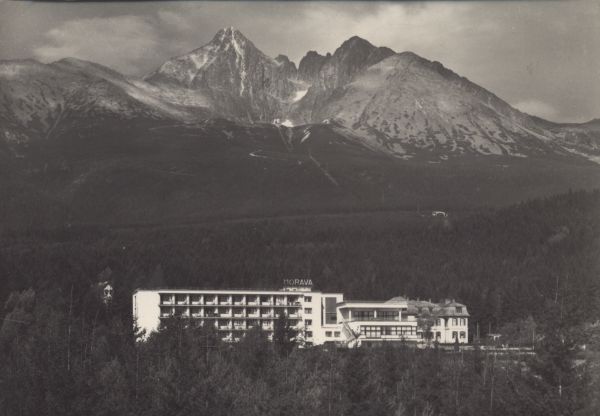 VYSOKÉ TATRY - Tatranská Lomnica Zotavovňa ROH Morava V pozadi Lomnický ątit (2634 m), Vidly (2517 m) a Keľmarský ątit (2556 m)