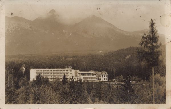 Vysoké Tatry - Tatranská Lomnica. Palác "Morava". Lomnickę 2634 m a KeŸmarskę čtít 2556 m.