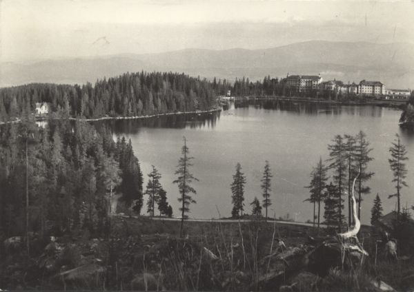 Widok na Szczyrbskie Jezioro. W dali nad jeziorem budynki sanatorium Hviezdoslav i Krywań.
