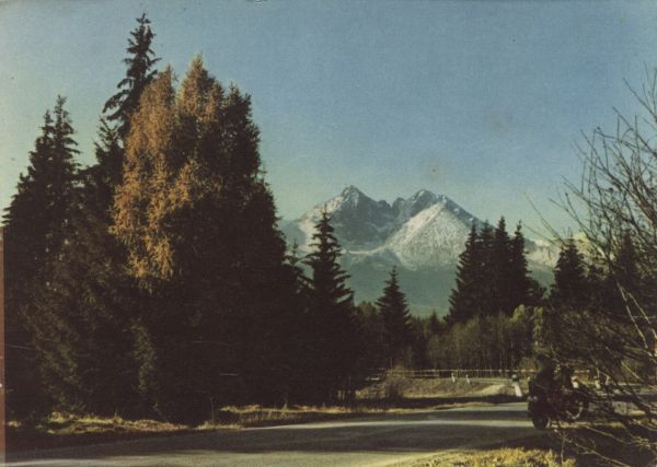Tatrzański Park Narodowy [Słowacja]. Widok na Łomnicê (w lewo) i Kieżmarski Szczyt (w prawo). Tytuł również w jêzyku: ros., ang., niem.