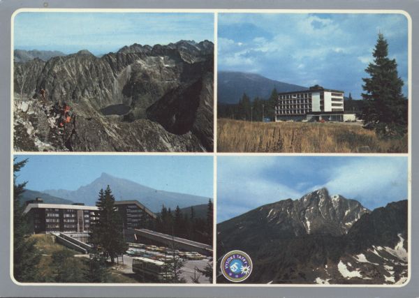 VYSOKÉ TATRY - VYSOKIE TATRY - HOHE TATRA - THE HIGH TATRAS Podbanské. Pohľad od Kriváňa do Nefcerskej doliny. Hotel Kriváň. Rekreačno-rehabilitačné stredisko OKD Permon. Kriváň - hlava indiána.