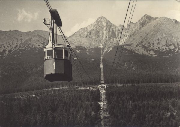 TATRANSKĘ NÁRODNĘ PARK Lanovka na Skalnaté pleso (1752 m). Nad ním Lomnickę čtít (2634 m) a KeŸmarskę čtít (2556 m)