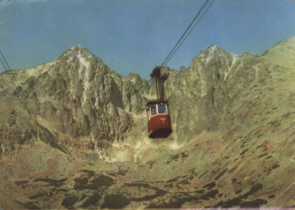 Tatrzański Park Narodowy [Słowacja] - kolej linowa na Łomnicę. Tytuł również w języku: ros., ang., niem.