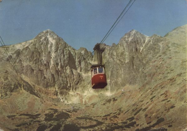 Tatrzański Park Narodowy [Słowacja] - kolej linowa na Łomnicę. Tytuł również w języku: ros., ang., niem.