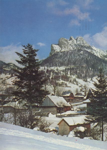Mała Fatra. Wielki Rozsutec - Widok na Południowe Skały w zimowej scenerii. Na pierwszym planie zabudowania osady Štefanova.