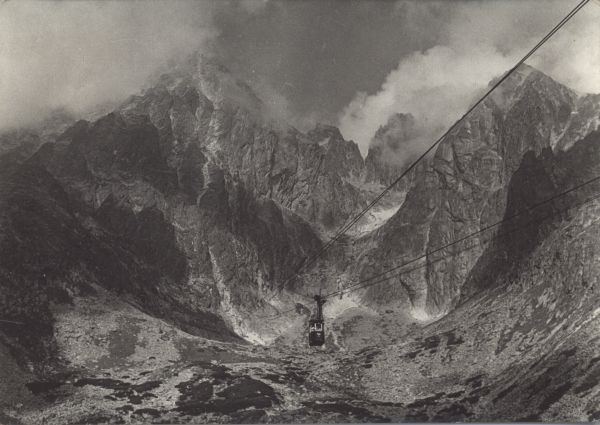 VYSOKÉ TATRY - Lanovka na Lomnický ątít (2634 m), vpravo: Západná Vidlová veľa, Vidlové sedlo (2413 m) Veµká Vidlová veľa (2517 m) a Keľmarský ątít (2556 m)