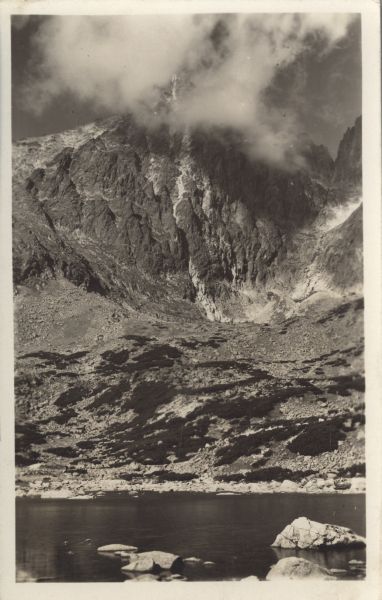 Tatry Wysokie - Łomnicki Staw. Łomnica w chmurach.