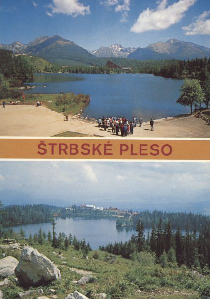 VYSOKÉ TATRY - VYSOKIE TATRY - HOHE TATRA - THE HIGH TATRAS ©trbské pleso. Pohµad ponad ©trbské pleso na hotel Patria, v pozadí ©trbský ątít, hrebeň Báąt s Patriou, Kôpky, Vysoká a Končistá. Pohµad na panorámu ©trbského plesa od severu.