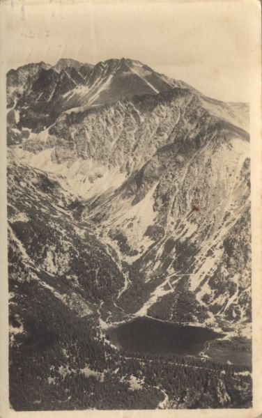 Widok na Dolinę Złomisk i Popradzki Staw. Na pierwszym planie las, w głębi Popradzki Staw oraz szczyty otaczające Dolinę Złomisk: Tępa i Kończysta. W tle Gerlach.