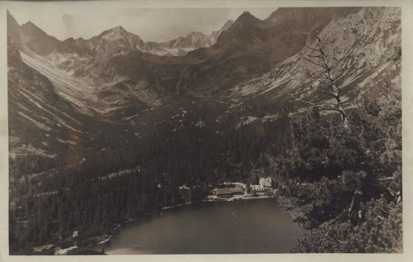 Pocztówka użyta w obiegu pocztowym, znaczek uszkodzony, korespondencja. Dodatkowo pieczęć: Popradské Pleso.