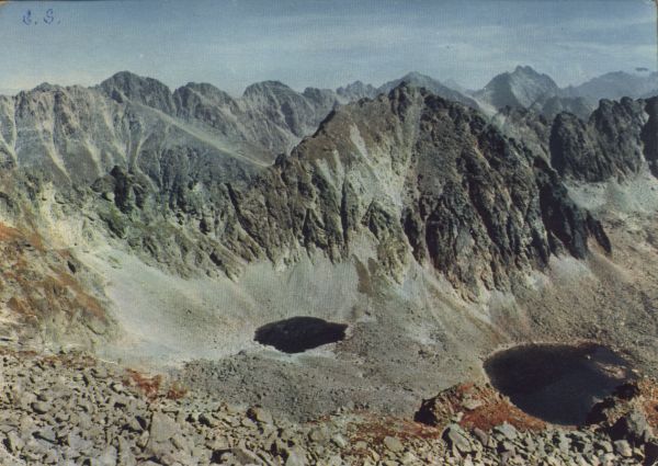 Widok z Bystrego Przechodu ponad Doliną Młynicką na Szczyrbski Szczyt. W dole Kolisty Staw i Capi Staw. Nad nimi Szczyrbski Szczyt. W dali widoczna grań Mięguszowieckich Szczytów i Wysoka.