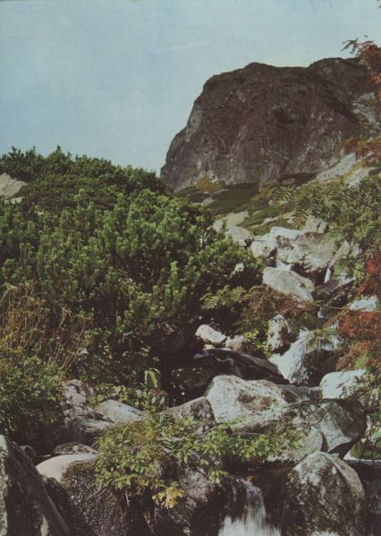 Jesień w Dolinie Młynickiej. Na pierwszym planie strumyk, po lewej stronie kosodrzewina (Pinus mugo Turra).