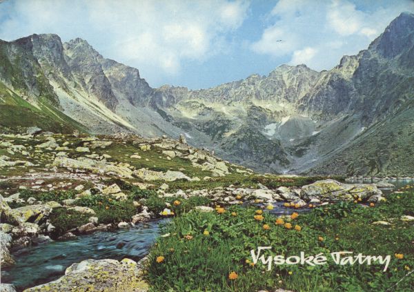 VYSOKÉ TATRY - WYSOKIE TATRY - HOHE TATRA - THE HIGH TATRAS Mengusovská dolina Pohµad z Hincovej kotliny na Kôprovský ątít (2367 m, vµavo), Čubrinu (2378 m) a zrázy Mengusovských ątítov (celkom vpravo)
