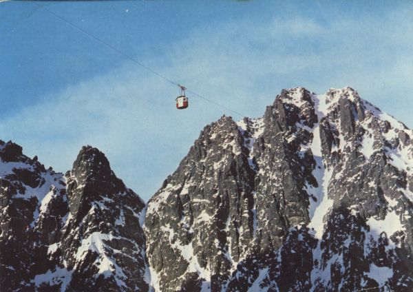 VYSOKÉ TATRY VYSOKIE TATRY - HOHE TATRA - THE HIGH TATRAS Skalnaté pleso. Visutá lanovka na Lomnický ątít, v pozadí Východná Vidlová veľa, Keľmarská ątrbina a Keľmarský ątít (2558 m)