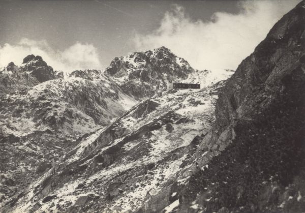 Tatrzański Park Narodowy [Słowacja]. Schronisko Zbójnickie w Dolinie Starole¶nej. W lewo Dzika Turnia, w prawo ¦wistowy Szczyt.