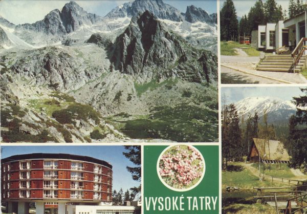 VYSOKÉ TATRY - VYSOKIE TATRY - HOHE TATRA - THE HIGH TATRAS. Ostrę čtít /2360 m/, ©iroká veŸa /2461 m/, Prieène sedlo /2352 m/, Prieèna veŸa /2461 m/. Pozemná lanovka zo Starého Smokovca na Hrebienok. Zbojnícka koliba v Starom Smokovci, v pozadí Slavkovskę čtít /2452 m/. Hotel Park v Novom Smokovci. Silenka Bezby”ová.