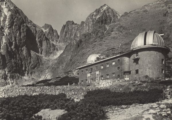 Obserwatorium astronomiczne Słowackiej Akademii Nauk w Dolinie Łomnickiej. Z lewej Łomnica, grań Wideł i Kieżmarski Szczyt.