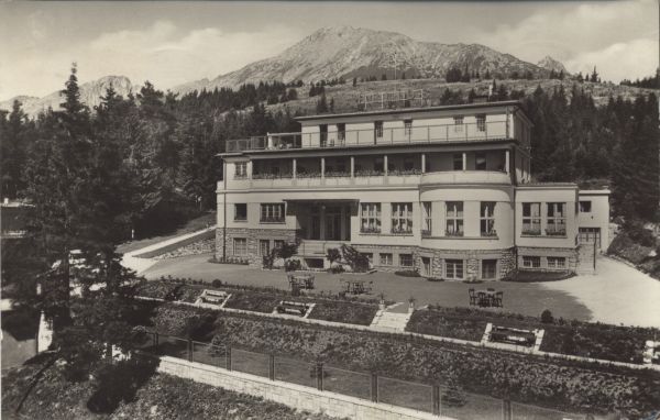Vysoké Tatry - Horný Smokovec 1000 m n. n. Vila Helios, v pozadí Slavkovský štít 2453 m m.m.