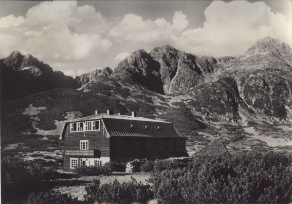 Tatry Wysokie - Schronisko Kieżmarskie (Państwowe Centrum Wychowania Fizycznego). W tle Durny Szczyt, Kozi Szczyt i Jagnięcy Szczyt.