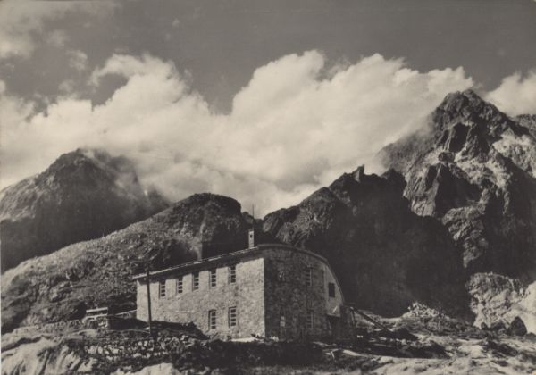 Schronisko Téryego w Dolinie Małej Zimnej Wody. W tle Mały Lodowy Szczyt, Pięciostawiańska Kopa i Lodowa Kopa.