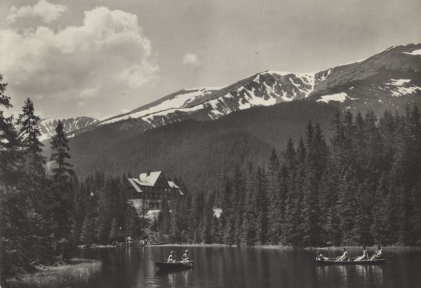 Niżne Tatry. Jasna. Wrbicki Staw z łódkami. Schronisko Mikołaja. W tyle Bory.