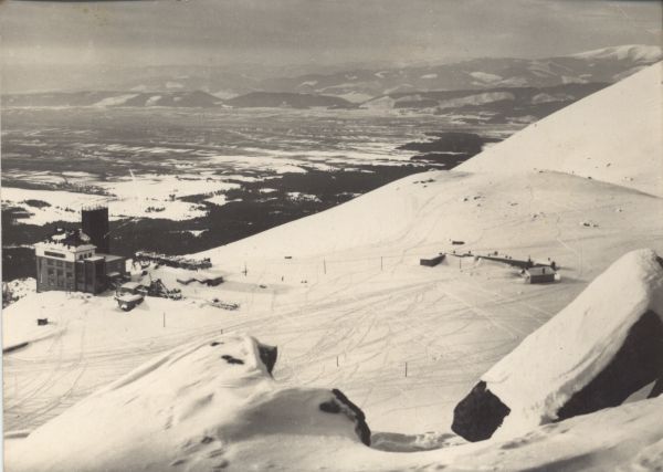 Tatry Wysokie - Łomnicki Staw. Widok na stację kolei linowej i na tereny narciarskie.