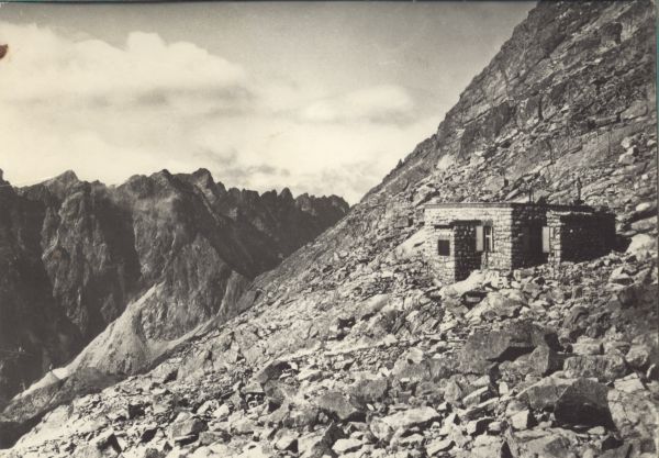 Schronisko pod Rysami. W tle widoczna grań Baszt nad Doliną Mięguszowiecką. Z tyłu Krywań.