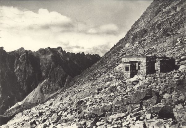 Schronisko pod Rysami. W tle widoczna grań Baszt nad Doliną Mięguszowiecką. Z tyłu Krywań.