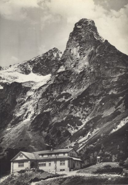Tatry Wysokie. Schronisko Brnčala przy Zielonym Stawie, Kołowy Szczyt i Jastrzębia Turnia.